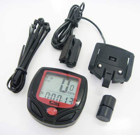 Pachetul contine: Computer + baterie, Suport pentru ghidon, Magnet, Senzor viteza, Manual de utilizare(engleza), Coliere pentru prindere.