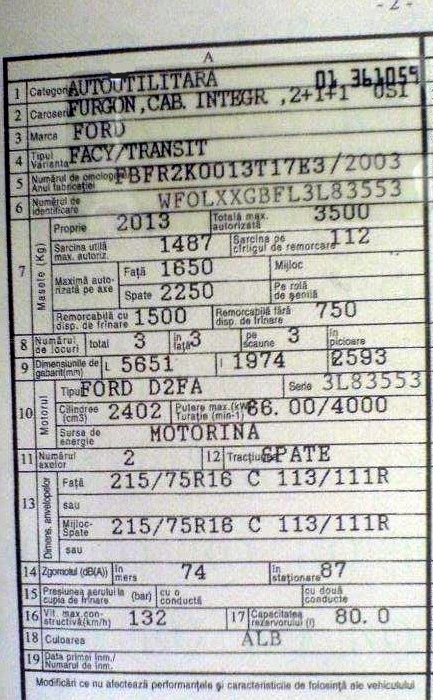 Alte comentarii : suprainaltata, culoare alb, inmatriculata octombrie 2003, primul proprietar, emit factura, deducerea TVA, se conduce cu "B"