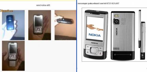 vand/schimb nokia e65 doar tel simplu fara charger, necodat,dar carcasa nu arata asa bineadica capacul pe spate..170 ron(carcasa vad aici pe site la 25 ron)