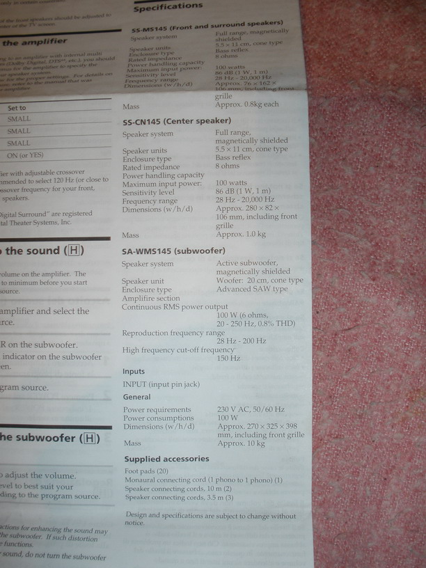 Subwoofer activ SONY ( amplificare proprie ) + 5 satelitii SONY