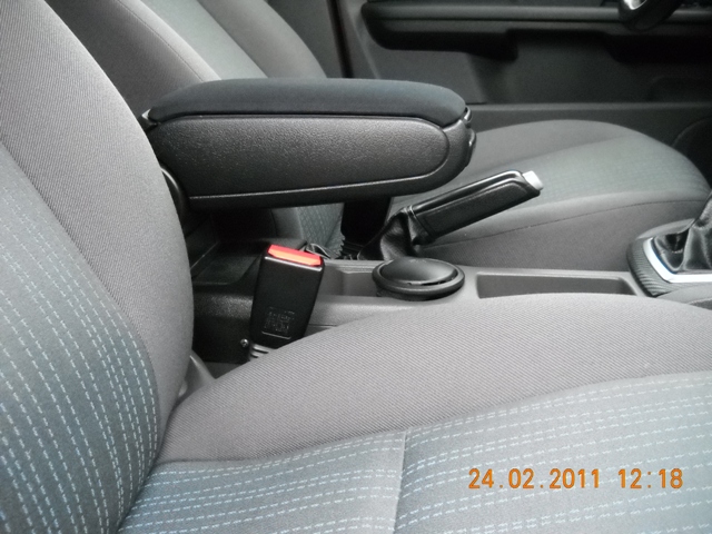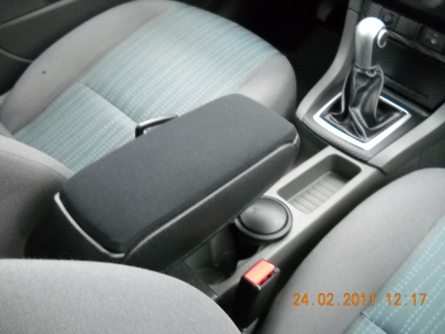Cotiera este noua, nu are nici cel mai mic defect, se potriveste perfect pe consola, este mult mai estetica si mai comoda decat cea armster. Partea de sus este acoperita cu material textil negru, foarte spatioasa in interior. Se regreaza pe mai multe inaltimi, este similara celor puse pe VW si Audi.