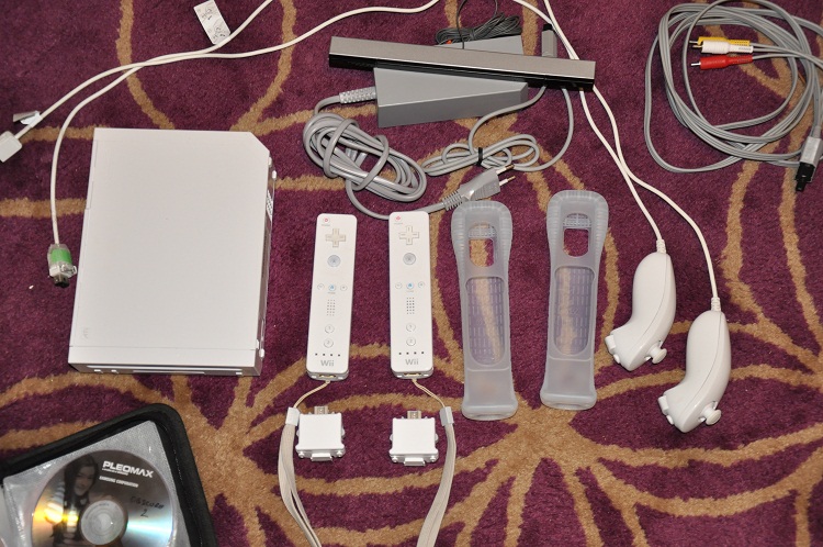 1 bucata nintendo wii modata (se poate rula orice joc pe ea) cu foarte multe accesorii( 2 telecomenzi + motin plus la ambele, huse de silicon pentru ele, 2 nunchuck-uri, balance board- nu este in poza dar o am etc ) + 30 jocuri. pret 1100 ron