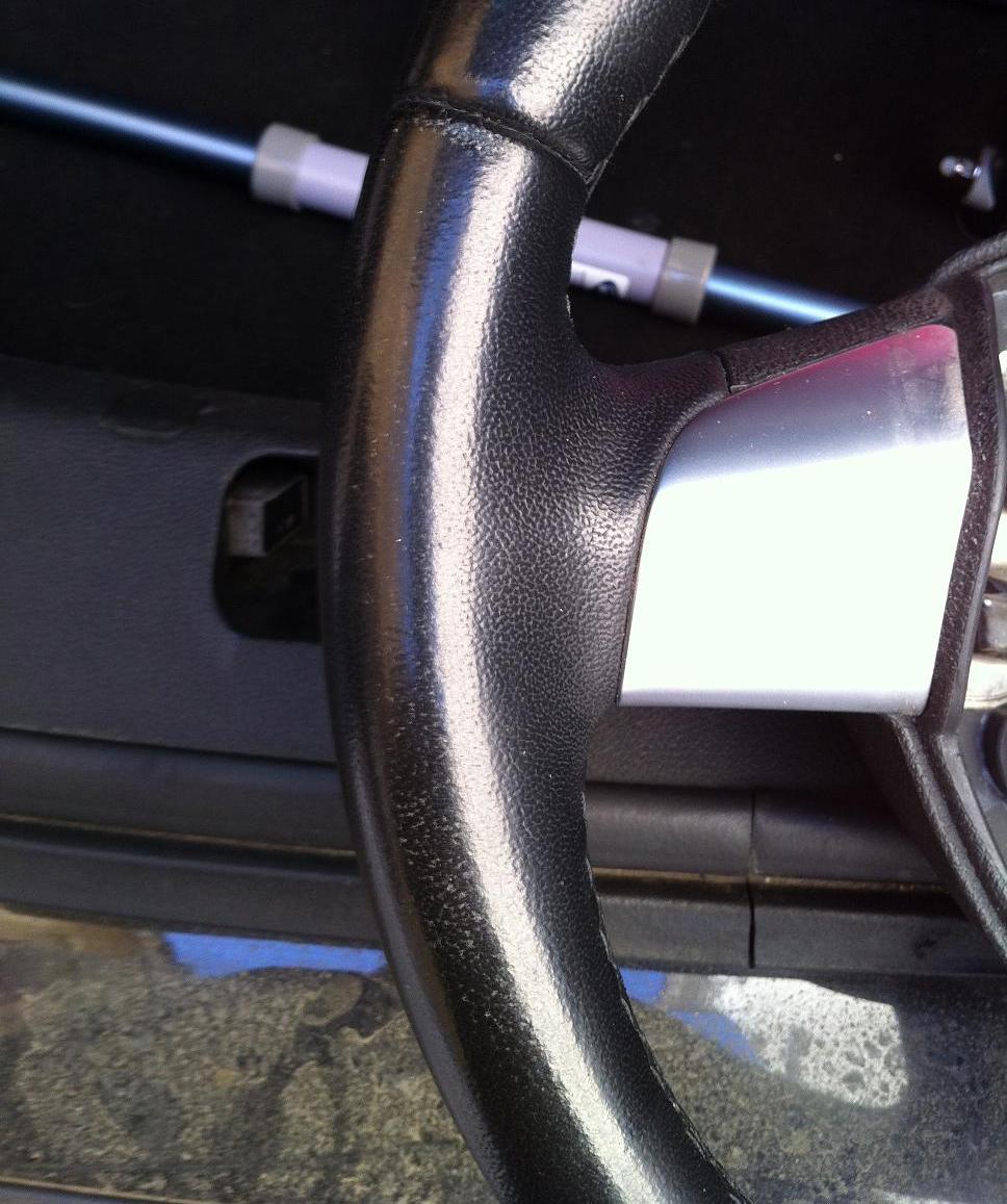 Volanul este in stare buna cu ceva semne de uzura pe partea stanga si vine fara airbag.