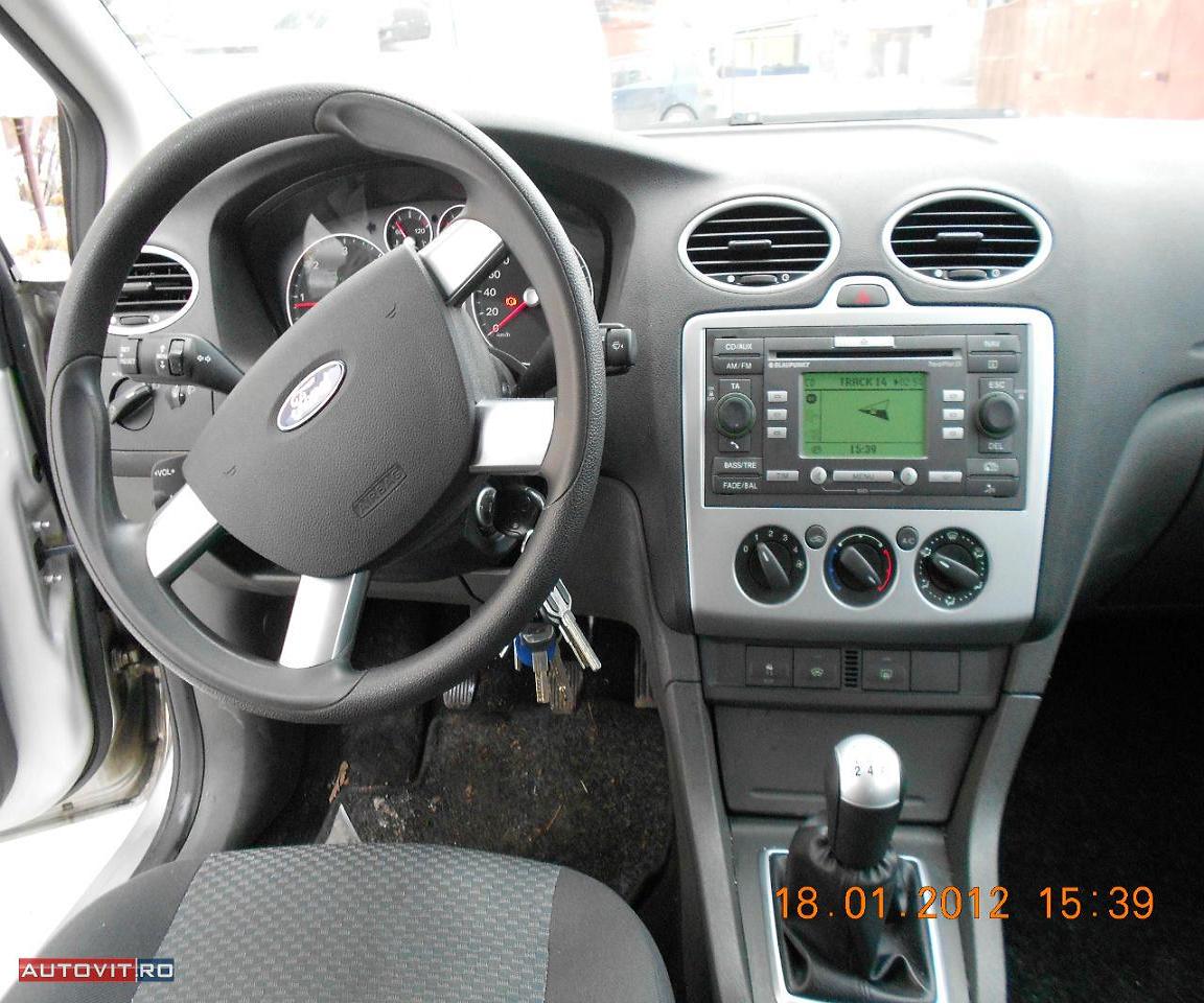 Vand autoturism Ford Focus, euro 4,INMATRICULAT RO, an fabricatie 2007, break cu 4 usi, culoare argintie. Motor pe motorina, putere 109 cp, capacitate cilindrica 1560 cmc. Consum urban 5 (l/100km). Are: Navigatie, AC, bord computer, 4xgeamuri electrice, 8 x airbag, radio cd+6 boxe, abs, esp, oglinzi electrice si incalzite, comenzi volan, parbriz incalzit, filtru de particule, inchidere centralizata din telecomanda, volan + scaun reglabil, vopsea metalizata, servo directie, pachet lumini oglinzi exterioare, carte service, cauciucuride iarna+cauciucuri de vara. Masina arata si functioneaza bine, nu este retusat niciun element, vopsea originalal.