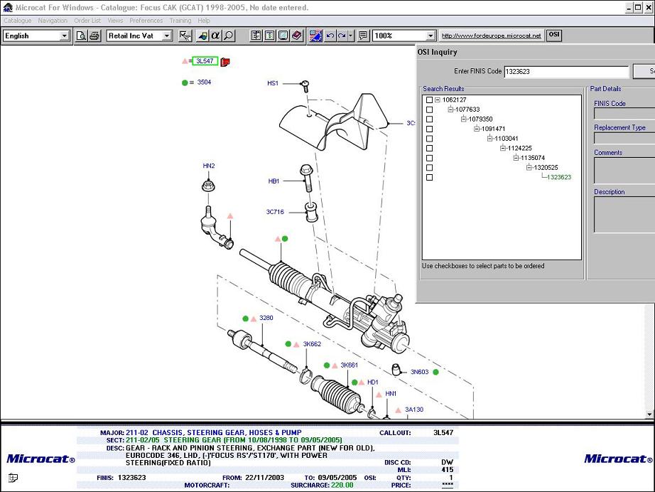 Caseta este noua (nu este remanufacturata), se potriveste pe Focus '98-'05. Codul este 1323623 dar am atasat o lista cu toate codurile echivalente. O vand pentru ca un "mecanic" mi-a spus ca la ce problema am trebuie inlocuita caseta - problema era la bieleta. Se vinde inclusiv cu capetele de bara.