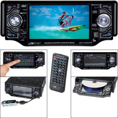 DVD / CD: • automata DVD / CD de încărcare (în slot) • CD, CD-R, CD-RW, MP3, VCD, S-VCD, DVD-R, DVD-RW, DVD + R, DVD + RW, DVD, Picture CD, JPEG, MPEG4 • Titlul de căutare (de până la 4 ori înainte şi înapoi) • Melodie Scanare • funcţia Repetare • Funcţia Random • redare Redare, Pauza Bluetooth • integrat modul Bluetooth • handsfree compatibil cu standardul multe Bluetooth pentru telefoane mobile • redare voce prin • Boxe auto de detectare automată la simpla apăsare a unui buton • Built-in microfon, profilul A2DP (streaming) Port USB: • Pentru redarea fişierelor MP3, de exemplu, de USB Radio: • FM / FM Stereo / MW / PLL tuner RDS • sistem • TA, AF, EON • Setări prestabilite staţie (18 FM / 6 AM) • automată şi staţia de manual a monitoriza: • Aprox. 4.3 "/ 10.9 cm monitor, PAL / NTSC sistem de culoare • Dicţionar meniul OSD • selectabil unghi de vizualizare de motorizat flip-jos tastatura, amplificator Touch-panel: • 1 x iesire subwoofer • spate AV • Ieşire digitală Audio Out (RCA) • 4 conexiuni difuzor • 4 x 60 Watt PMPO • înalte şi bas • presetate EQ • intrare AUX (audio şi video, faţă) • funcţia Loudness • subwoofer General de comutare: • Anti-şoc şi ESP (Electronic şoc Protecţia ) • Incl. Capac pentru panou • Aprox. 4.3 "/ 10.9-inch TFT monitor • camera de conexiune • antenă automată de control • Incl. Port USB şi auxiliare • funcţia de intrare completa telecomandă • Incl. Ceas inclus: • DVD / USB / LCD Stereo Radio • Universal cabluri de conectare •