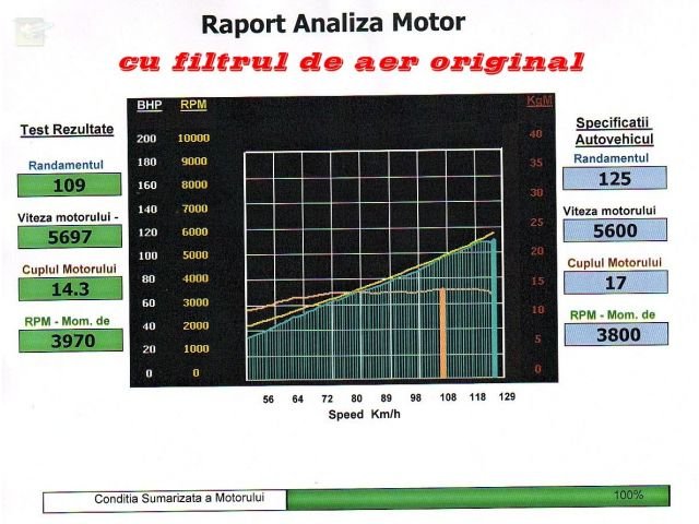 Iar jos rotatiile pe minut, se poate observa diferenta de rotatii in care s-a ajuns la putere maxima.