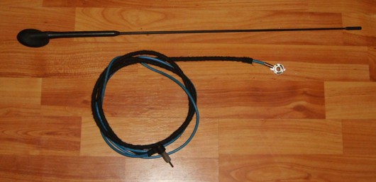 se vinde antena din imagine.cablul se prinde in antena cu ajutorul unui surub,la celalalt capat are mufa de antena mica in care este un adaptor de la mufa mica la mufa mare.