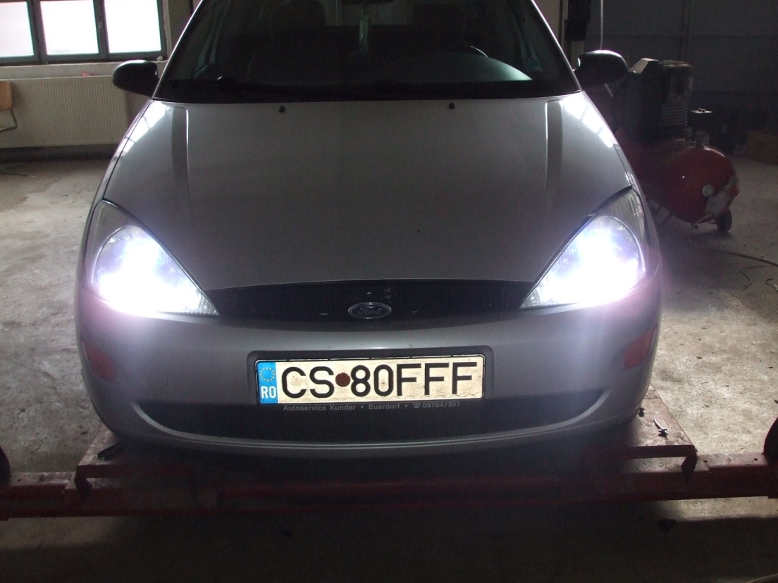 deci , ca sa inteleaga toata lumea : am cumparat un set de lupe in care sunt montate becuri bi-xenon ( 6000k, faza scurta-faza lunga toate prin lupa). aceste lupe merg montate in toate farurile care au bec h4 deoarece lupa se monteaza in locul becului halogen.eu doar le am pus in farul de focus 1. nu trebuie facuta nici o modificare la instalatia masinii. toata instalatia lupelor e de genul plug and play. daca cineva mai are nedumeriri sa ma intrebe