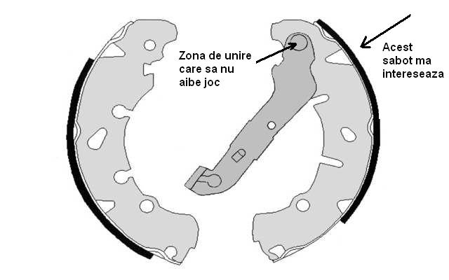 $1 scrie:$2alut. Ma intereseaza unul din sabotii de frana de pe partea stanga (pe partea soferului) cel cu parghie. Au fost schimbati vreodata sabotii? Cati kilometrii are masina? Ma intereseaza sa nu aibe joc in zona de unire intre sabot si parghia acestuia (acolo este folosit un nit mai mare) si sa aibe ceva "carne" pe el. Am atasat o poza cu explicatiile in aceasta.