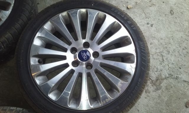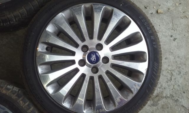 Vand set de 5 jante ford 225/45/17 , eu le-am avut pe mondeo: ET 55 ;7,5j x 17 cu stanta ford pe ele . Din pacate sotia nu a prea avut grija de ele.Doua dintre ele au fost STRAMBATE SI INDREPTATE , iar celelalte prezinta zgarieturi . 4 jante au cauciucuri, care mai merg maxim un sezon iar a cincea janta este fara. Pret 500 ron . Nr telefon 0753281522 Ionut.