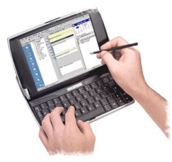 Am primit aceasta "bijuterie" acum cateva luni de afara. Il vand deoarece am realizat ca nu am la ce sa il folosesc nefiind om de afaceri. Are aproape toate specificatiile unui laptop obisnuit. I se poate atasa bluetooth, card pcmcia pentru wireless, hard disk portabil etc.