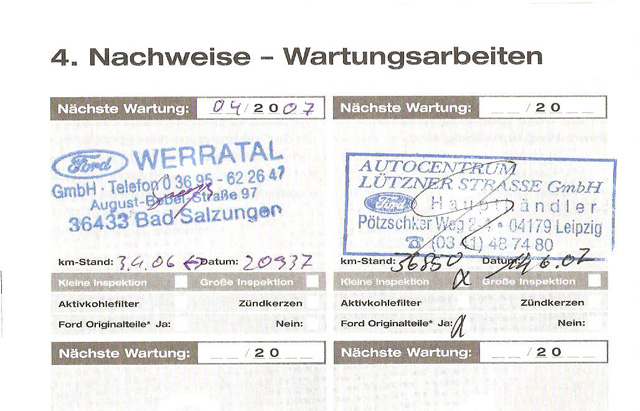 Masina a fost adusa personal din Germania in Iunie 2007 - pentru uz personal, nu cu intentie de revanzare. Nu a avut nici un fel de probleme pana in prezent si functioneaza perfect. Ultima revizie in Germania a fost facuta la momentul cumpararii la 36.000 km. La 50.000 km au fost schimbate urmatoarele: ulei, filtre aer/polen/ulei/motorina, cureaua de agregate. Toate consumabilele sunt originale Motorcraft si au fost achizitionate de la ForCar. Am avut intentia de a schimba si placutele dar mecanicul mi-a recomandat sa le schimb la 60.000. Oricum placutele noi (Originale Motorcraft) sunt incluse in pret si pot fi schimbate la cerere.