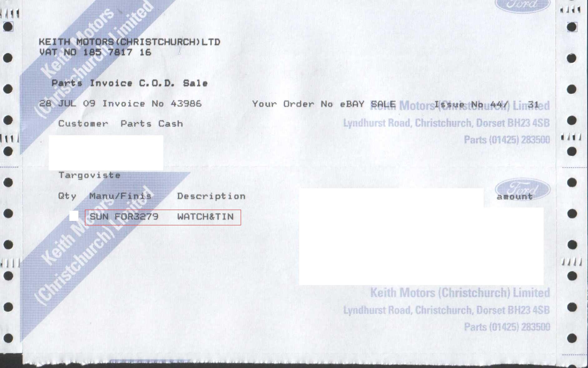 Keith Motors (reprezentanta Ford) imi va transmite o copie a invoice-ului care sa dovedeasca sursa de provenienta.