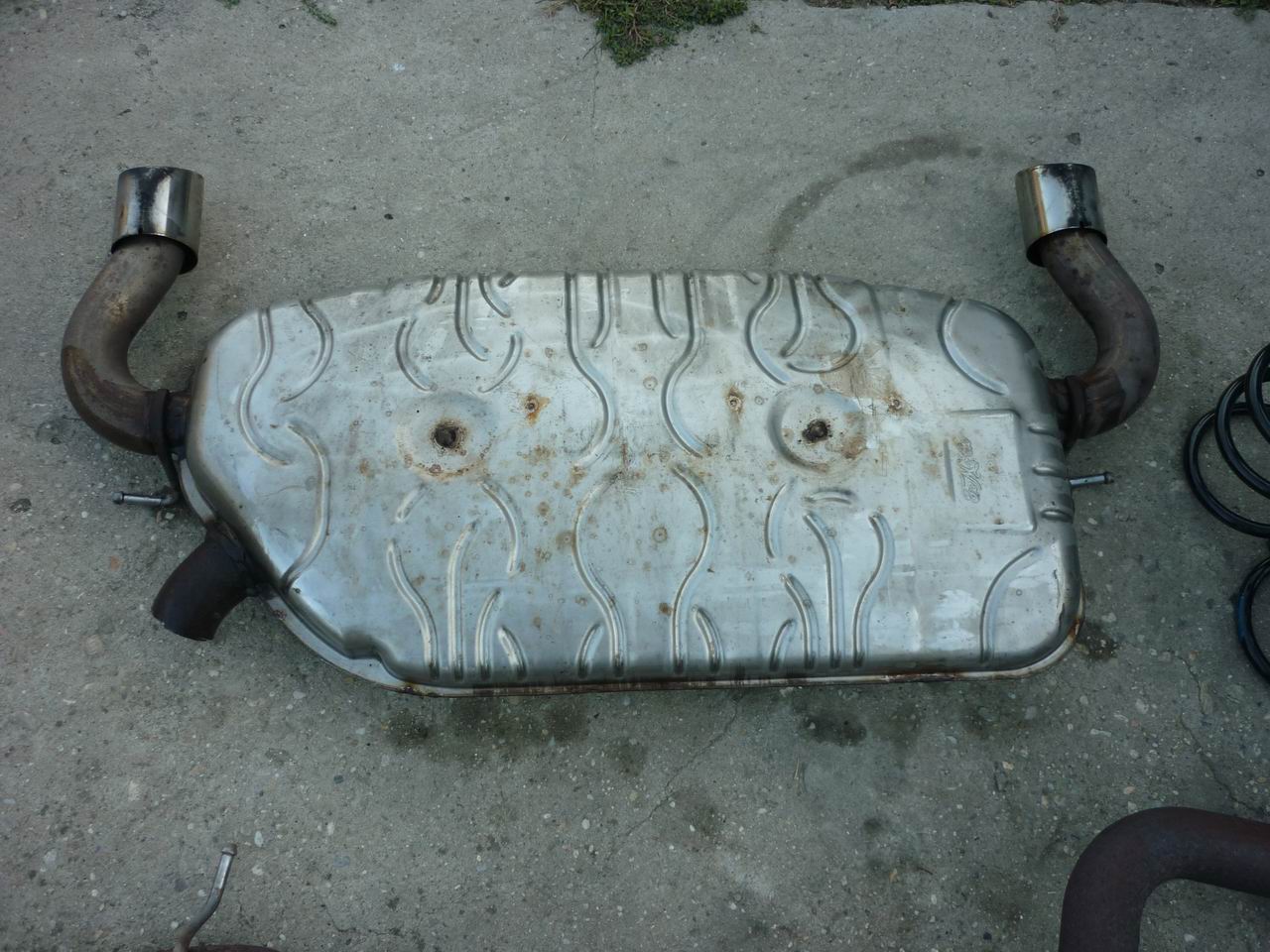 3. evacuare originala de st - toba finala cu evacuare dubla si toba intermediara. Toba era o singura bucata, unita prin sudura (originalul). Cele doua au fost separate cu flexul, altfel nu aveau loc pt. transport, se sudeaza fara probleme.(vezi poza)