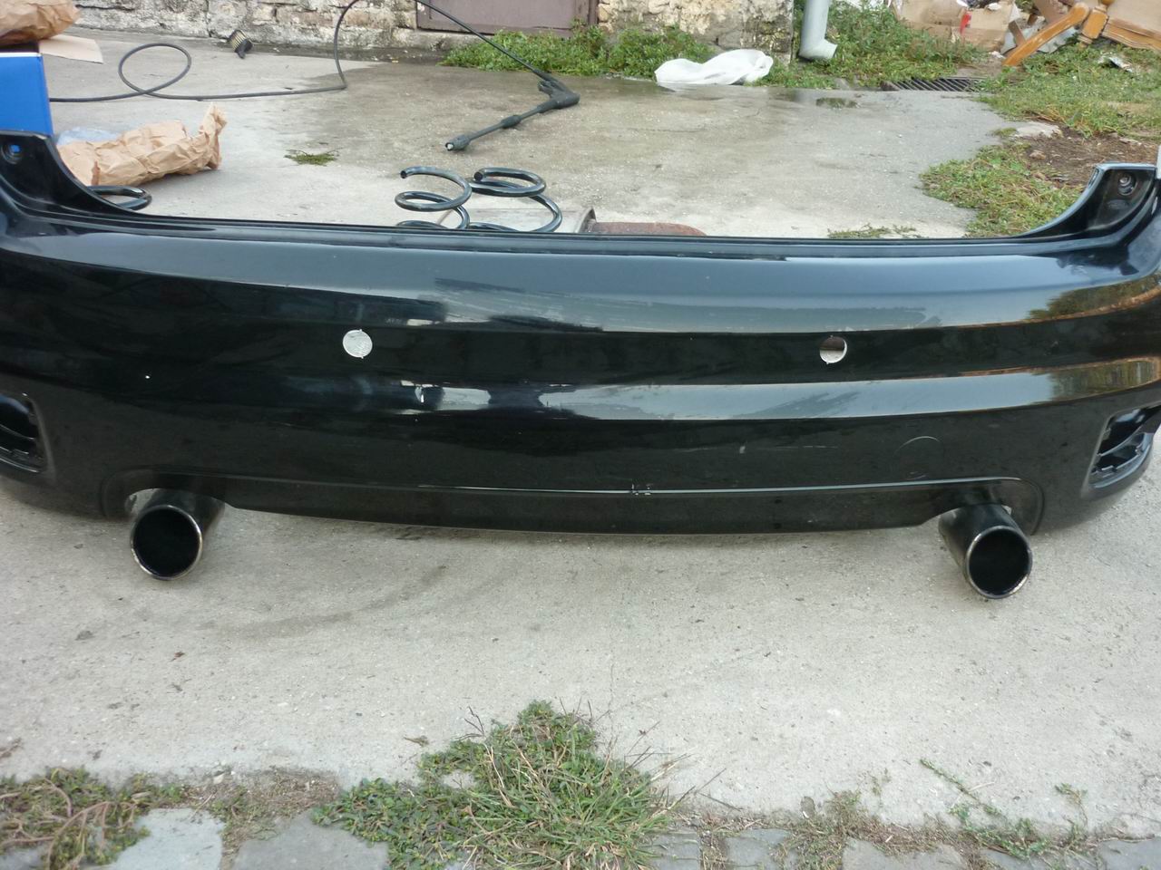 1. bara spate - stare f. buna, nu e sparta, 2-3 puncte albe (vopsea sarita) de la pietre, culoare neagra. Punctele ies lejer la revopsirea in culoarea masinii