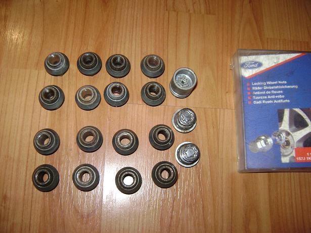 Primul set 16 piulite aliaj cu saiba(originale ford)+doua piulite antifurt+cheie la suma de 150 ron,iar al doilea set(16 piulite) pt.alte jante de aliaj(exclus cele de Ford) la modica suma de 100 ron.