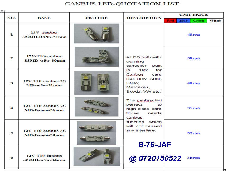 vand leduri auto,gama foarte variata,inclusiv leduri cu CAN BUS care nu mai dau erori de bec ars in bord.
