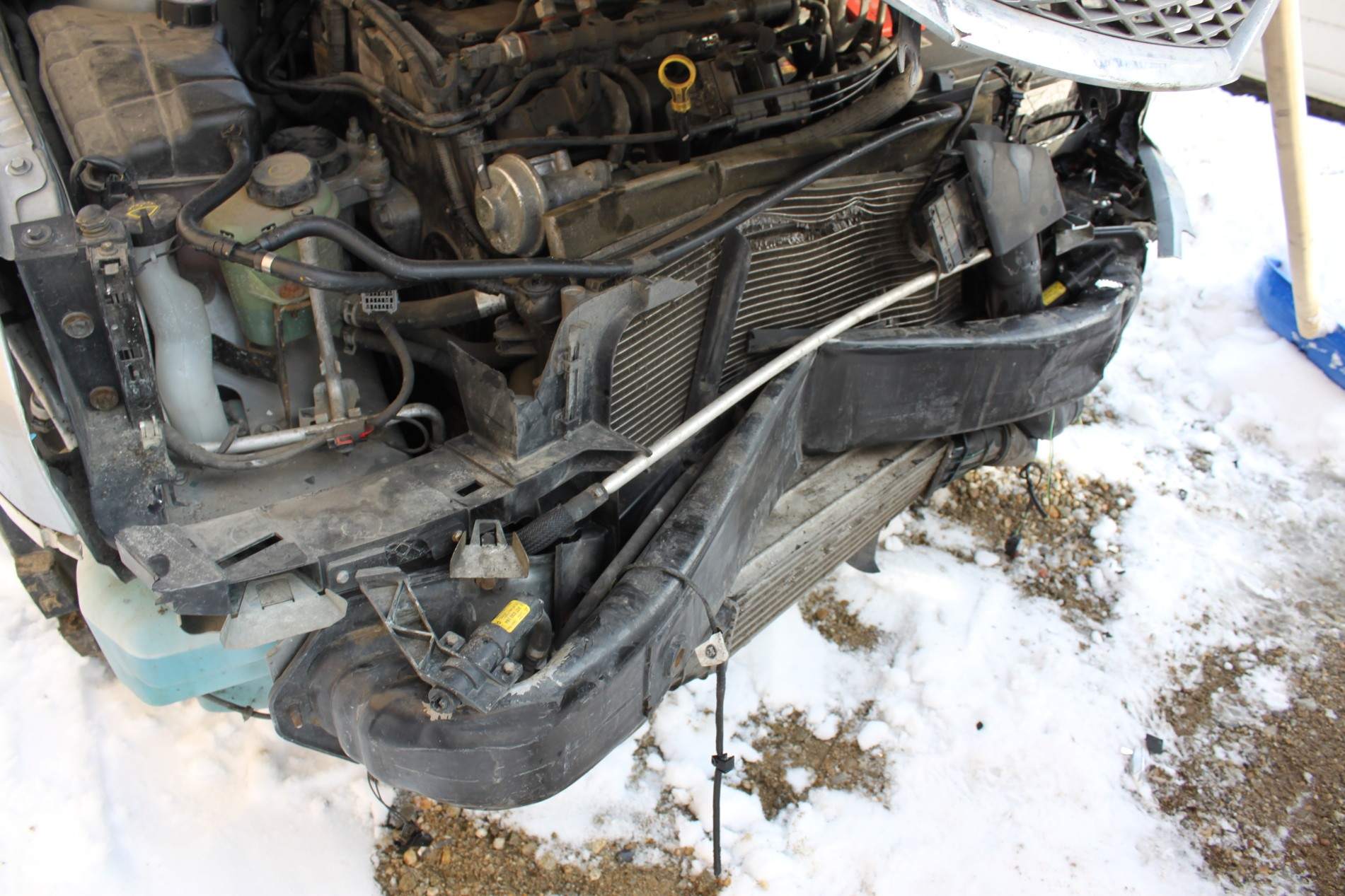 Motorul porneste, nu a patit nimik, avarii: airbaguri fata, parbriz, capota, aripi, radiatoare,intercooler, bara fata, faruri(au scapat in schimb ambele becuri si droserele) , un proiector