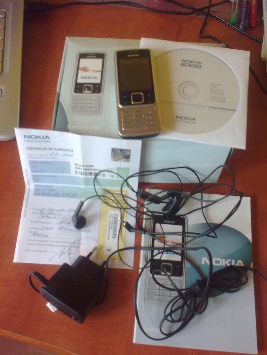 Nokia 6300 pachet complet: telefon, incarcator, card de 1gb, hands-free, cutie, carticele, cd, etc.