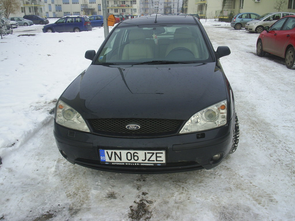 culoare negru-sidef, xenon,spalatoare faruri,scaune cu reglaj electric+incalzite,oglinzi electrice incalzite, pilot automat, comenzi volan, 5 trepte, piele crem,cotiere, abs,esp,ips,parbriz incalzit, trapa electrica bipozitionala, jante aliaj pe 17 sau 18 +un set jante tabla 16 cu anvelope ce sunt pe masina acum,compresor clima nou in garantie-schimbat vara asta 2010, schimb ulei+filtre toate schimbate, restul dotarilor ca si la celelalte mondeo mk3.