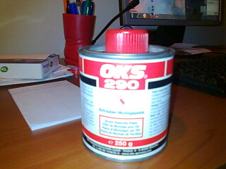 Vand pasta antigripanta, pentru suruburi,axe,etc., orice piesa care e in contact cu apa,noroiul,frigul.Este acea pasta care se gaseste pe suruburile de la etriere, bascule.Are in componenta Cupru si alte aliaje care ii permit sa ramana intacta in conditii de temperatura de la -30 la +1150 grade celsius si de umiditate.Este Made in Germania, calitate exceptionala.