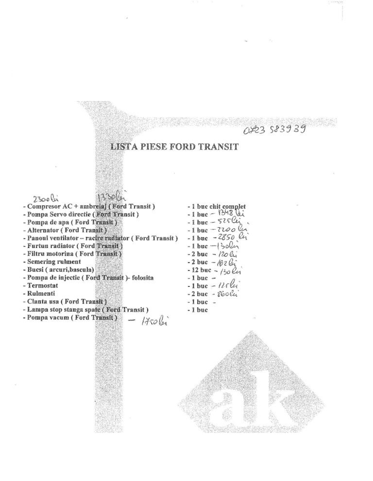 Vand piese ford transit. Am atasat o poza cu ce am disponibil si la ce pret