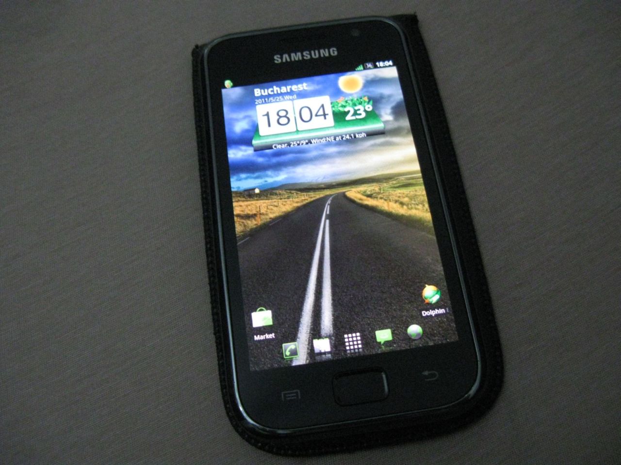 Telefonul se prezinta intr-o stare f.buna. Display-ul arata impecabil fara zgarieturi (ii acord nota 9,9) iar spatele prezinta urmele normale de folosire specifice acestui model (nu prezinta zgarieturi, ciobituri etc). Pe rama argintie mai prezinta 2-3 zgarieturi dar nimic grav. Dupa cum spuneam telefonul se prezinta foarte bine (i-as acorda nota 9, eu fiind mai exigent). Bateria tine aprox. 3 zile (depinde cum il utilizati). Are instalat un custom rom de pe forum xda, numit Insanity (cel mai rapid rom sau cel putin asa se spune). Functioneaza cele 3 butoane (pentru cunoscatori) pentru a intra in Download - Recovery Mode, deci se poate instala cu usurinta orice rom.