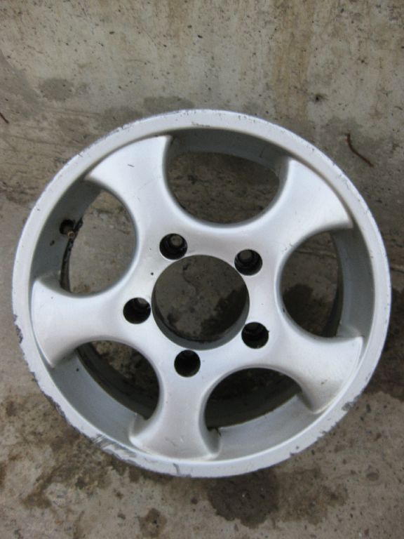 3. Janta aliaj, modelul din poza, tot R15, e made in italy, nu stiu prea multe despre ea, ce et are, poate va descurcati voi, zgariata pe exterior, si ciobita pe interior, (exterior reparabil prin vopsire/lacuire) 150 ron neg.