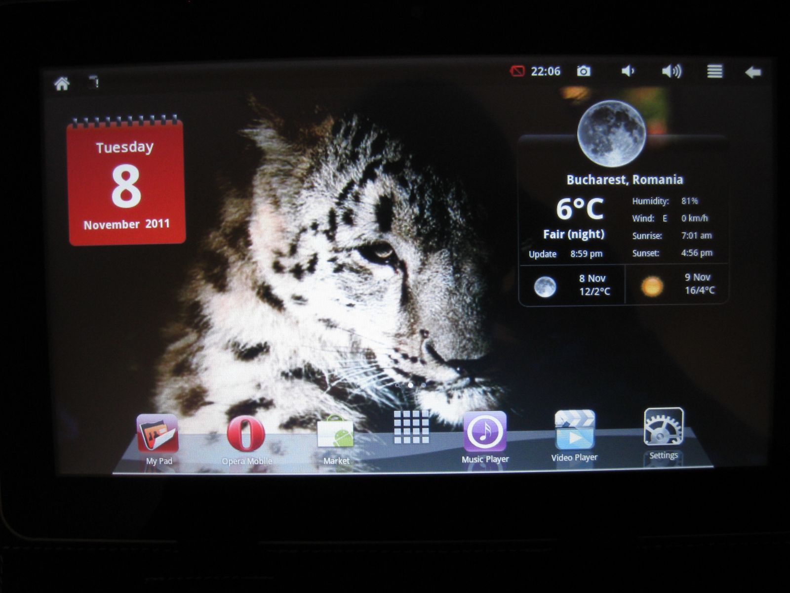 Tableta se prezinta intr-o stare impecabila (abia i-am dat tipla jos pt ca incepuse sa prinda bule si ma deranja) dupa cum se poate observa si din pozele atasate. Desi este o marca mai putin cunoscuta pot spune ca m-a surprins placut din mai multe puncte de vedere. Este foarte bine construita, se misca bine, display-ul se vede FOARTE BINE (am avut inainte un Archos IT de 10.2 inch si se vede mai bine decat Archos-ul care este mai scump cu cateva milioane) iar touch-ul desi este rezistiv raspunde foarte bine la atingerea degetelor deci nu aveti nevoie de stylus. Nu se incinge nici macar dupa mai multe ore de functionare si nici nu se blocheaza. Puteti vedea filme de 720p si chiar 1080p pe ea fara nici un fel de problema. Suporta stick-uri si card-uri de 32 giga (probate) fara probleme. N-am incercat sa vad daca suporta si un hdd portabil dar nu este timpul trecut. Are antena gps deci cu un program de navigatie adecvat o puteti transforma intr-un gps dedicat. Va trebuie doar softul si doar atat (voi incerca sa caut si eu un IGO pe internet pt. a-l instala).