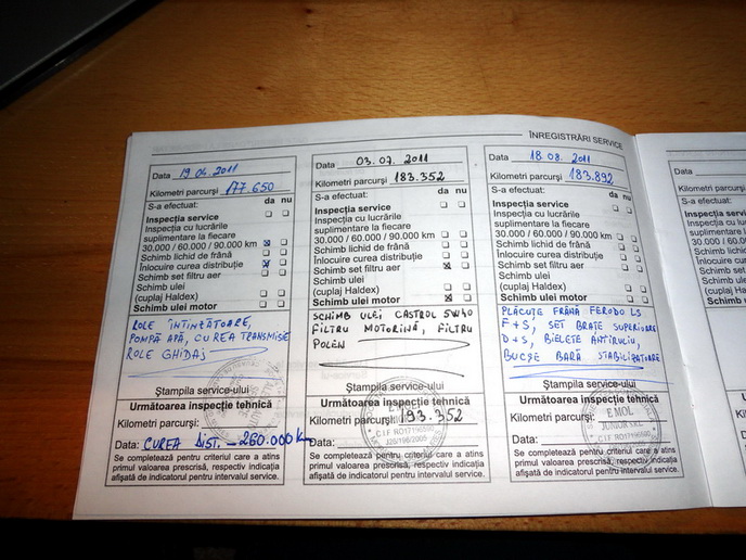 - masina a avut carte service la zi cand a fost adusa din Germania iar pe urma s-a facut carte service in Romania;