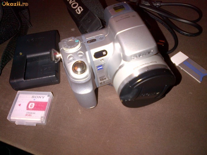 Vand urgent aparat foto compact Sony Cyber-shot DSC-H9, stare foarte buna. Nu prezinta urme de uzura. Asa cum se poate vedea si in poze, vine cu un acumulator suplimentar, toate accesoriile originale, geanta, card memorie Sony Memory Stick Pro Duo 2GB.
