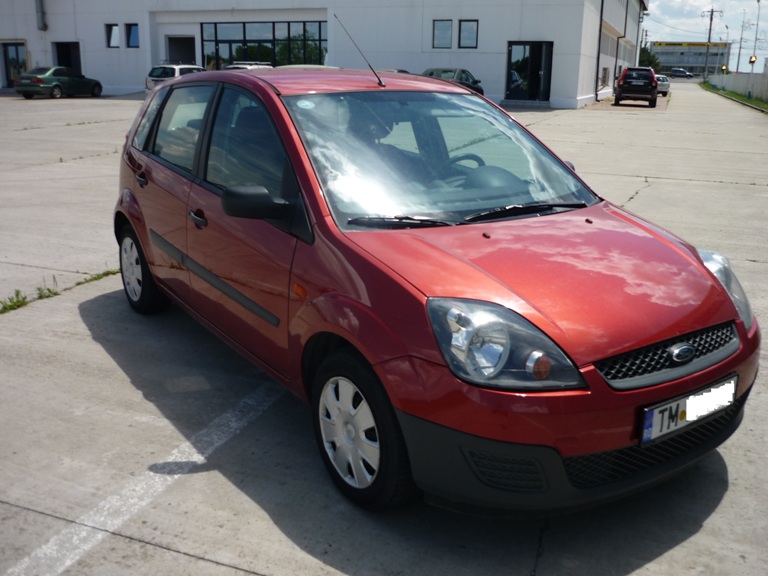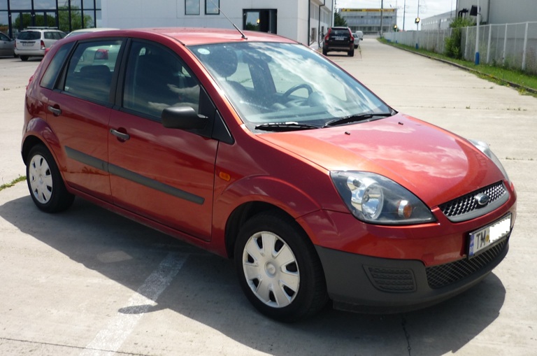Vând Ford Fiesta, cumpărată de la dealer Timişoara, prima înmatriculare octombrie 2007, fabricat 2007, motor 1.3 benzină, carte service la zi, întreţinută, huse la comandă în culoarea caroseriei, fără avarii, km reali la bord 40,000