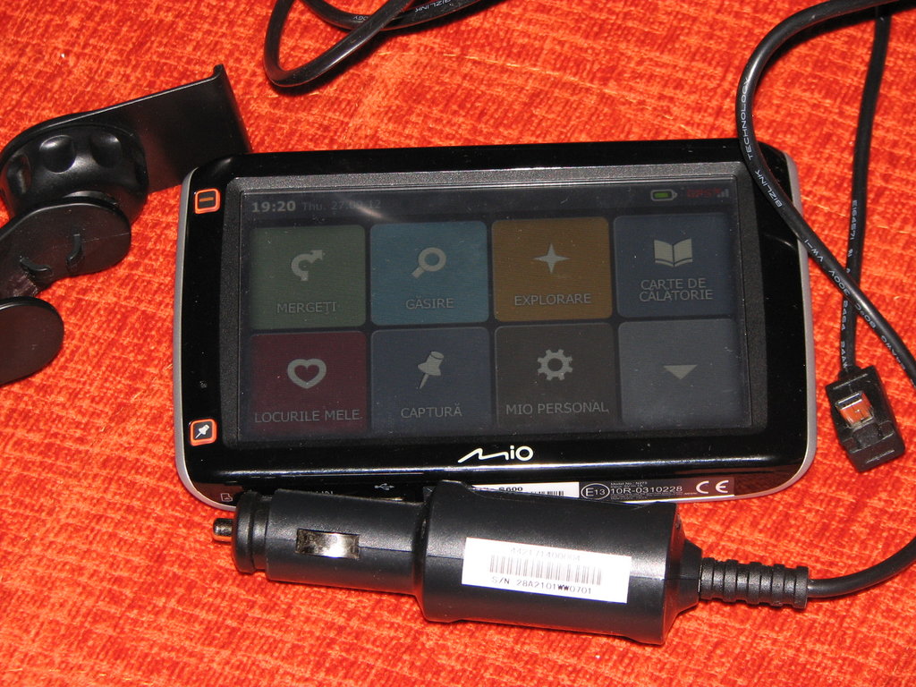 GPS-ul vine insotit de suportul de parbriz si incarcatorul auto.