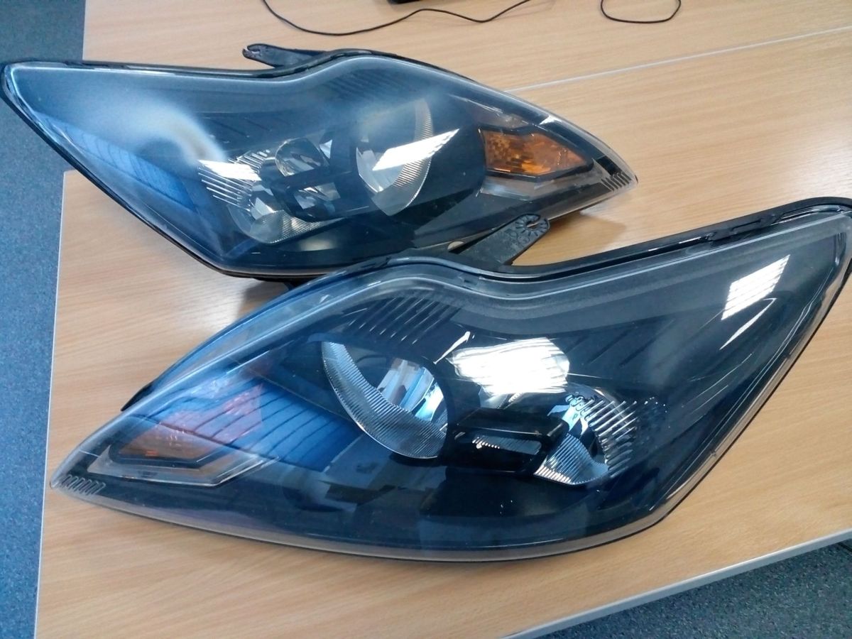 Vand faruri Ford Focus 2 facelift, originale, fundal negru, complete, perfect functionale. Farul de pe partea dreapta are sticla afumata in dreptul becului de pozitie si putin deasupra soclului de faza lunga (dupa cum se vede si in poze). Nu sunt matuite, zgariate, sparte. Au capacele spate, nu au prinderile rupte.