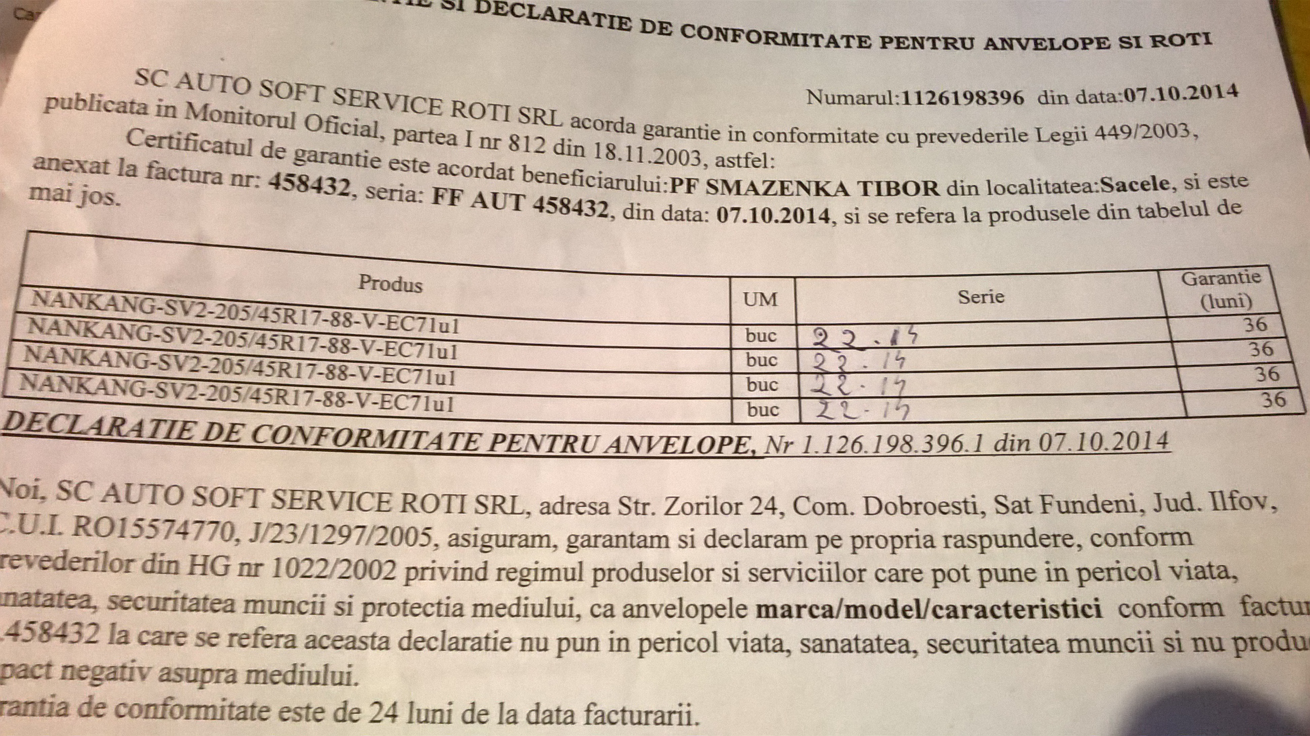 anvelopele le-am cumparat eu personal in data de 07.10.2014 cu 36 luni garantie