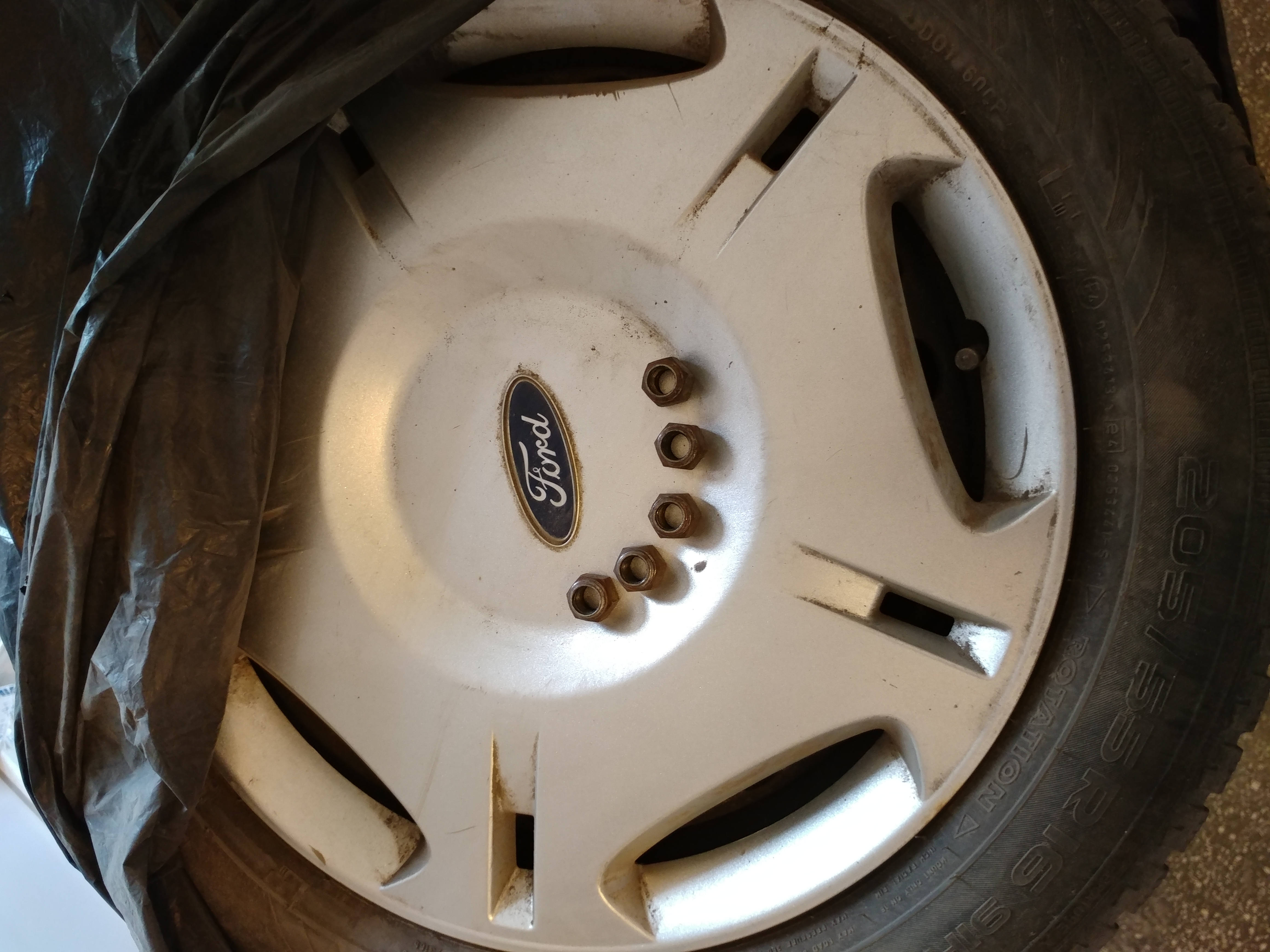 Se vinde un set complet de roti de iarna care se potrivesc la orice model Ford (au fost montate pe un Mondeo din 2004).