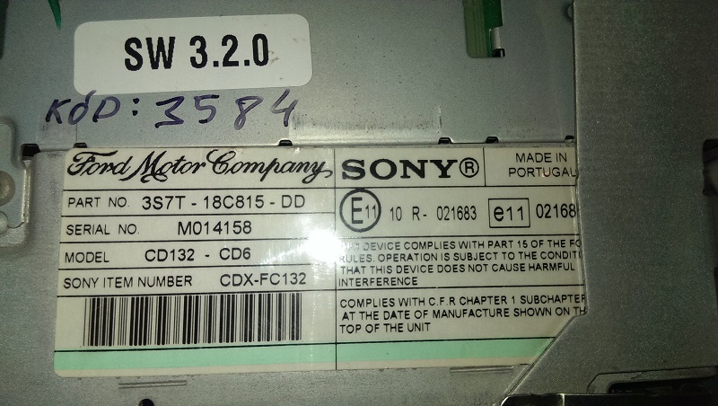 De vanzare CD player Sony CD-132 cu schimbator de 6 CD. Se potriveste pe Mondeo MK3 facelift si prefacelift.