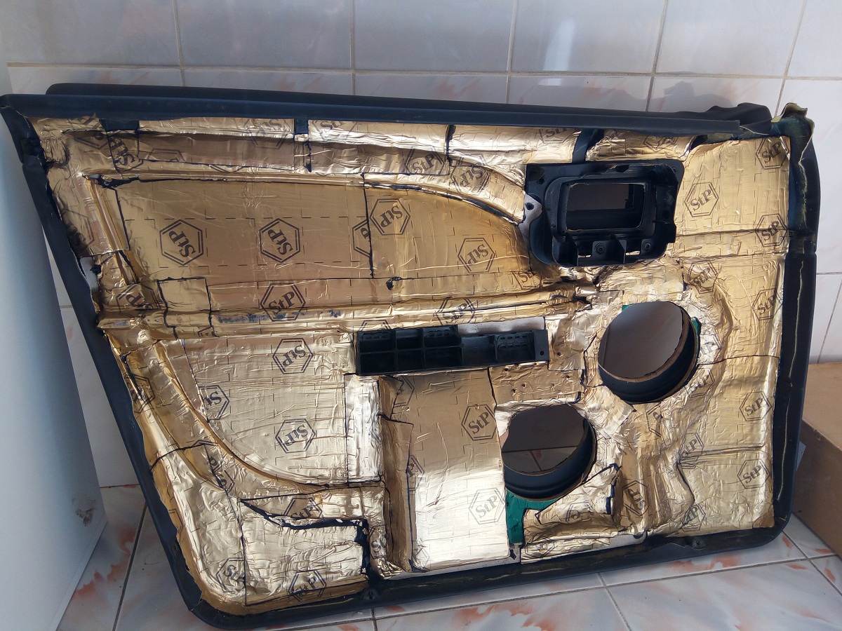 *fete de usa fata, modificate pentru 2 x 16 cm midbass, antifonate cu STP Gold, tapitate cu piele sintetica si alcantara, 150 E ambele.