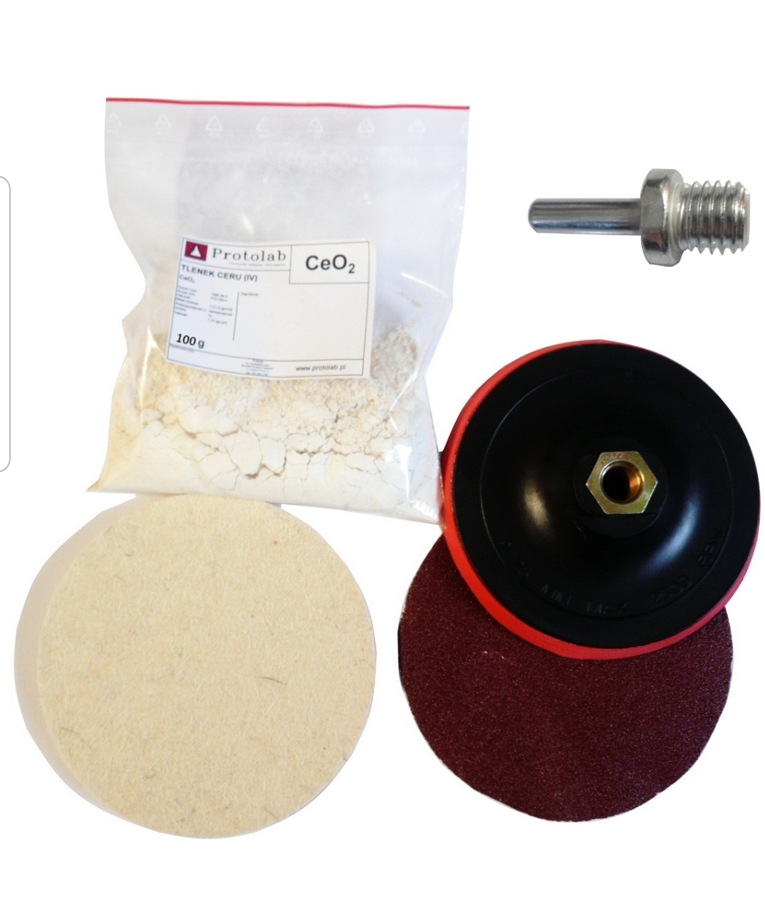 După amestecarea cu apă în proporție de 1: 1, formează o pastă groasă, utilizată pentru îndepărtarea zgârieturilor de pe sticlă și lustruirea suprafețelor de sticla, de ex.*geamuri auto, faruri auto, oglinzi.