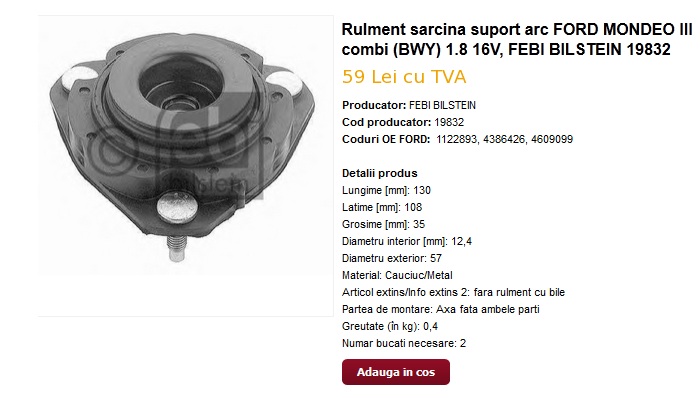 p.s. Abia am cumparat masina si nu stiu prea multe despre ea si schimburile necesare, deci accept cu placere sugestii in oferta, daca am omis ceva (spre exemplu la amortizoare am vazut ca Adispan recomanda schimbarea flansei, rulmentului, piulitelor nu stiu care si a unor burdufe de praf). As dori preturile pentru piese originale si o varianta aftermarket recomandata. Nu caut sa fac investitii prea mari in masina, vreau doar sa functioneze rezonabil.