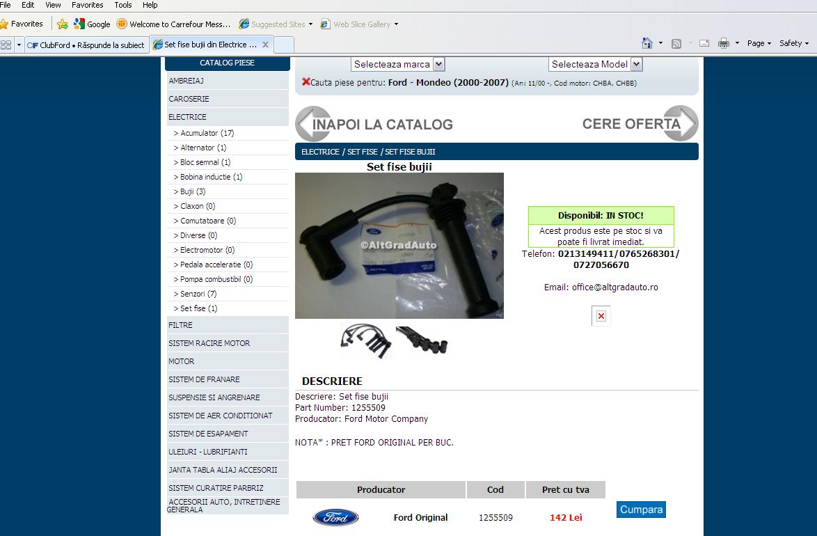 In acest moment voi vindeti SET FISE BUJII LA PRETUL DE 142 LEI in conformitate cu pretul afisat pe site(vezi atasament).