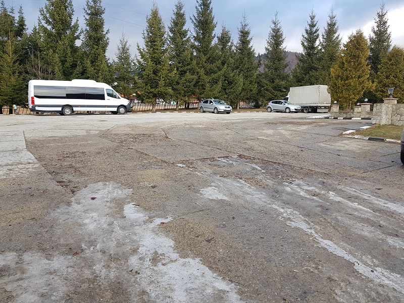 - fie in parcarea cabanei - dar aici trebuie luat legatura dinainte cu cei care se ocupa de cabana sa ne permita accesul, ca momentan cabana e inchisa iar parcarea e blocata cu bariera