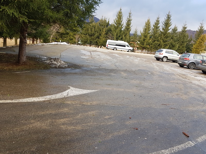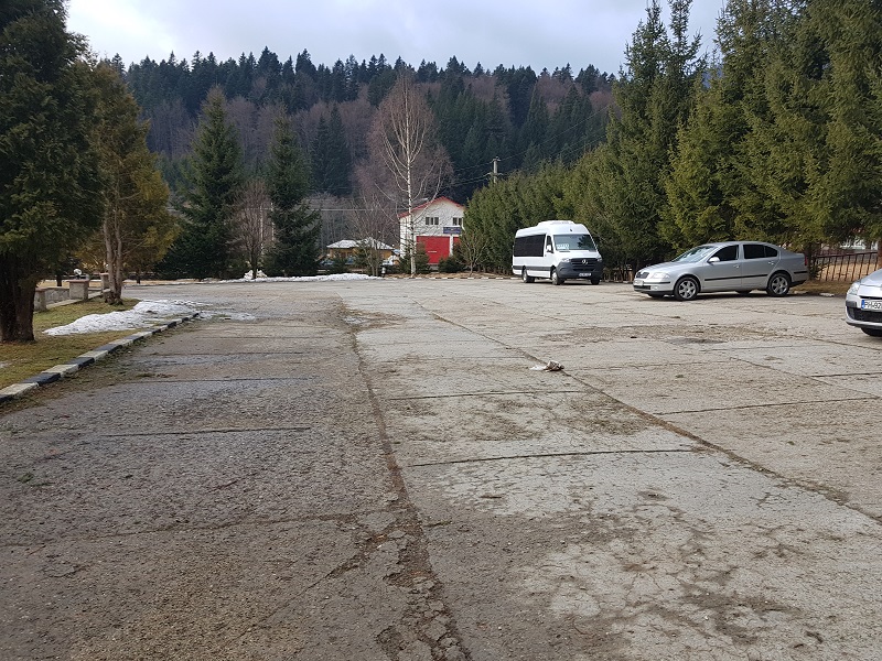- fie in parcarea cabanei - dar aici trebuie luat legatura dinainte cu cei care se ocupa de cabana sa ne permita accesul, ca momentan cabana e inchisa iar parcarea e blocata cu bariera