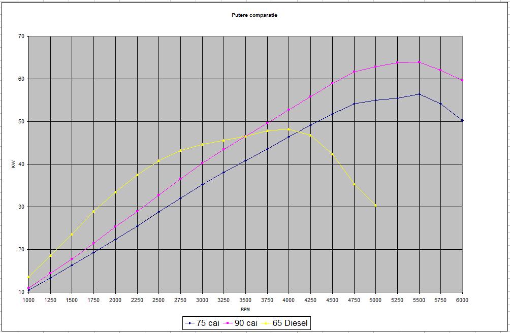 In practica, intr-o depasire in miscare sa zicem, un motor de 68 CP nu va trage niciodata la fel ca unul de 100 CP, indiferent de tipul combustibilului, indiferent de cum ai schimba vitezele, indiferent de faptul ca cel de 68 CP are cuplul mai mare.