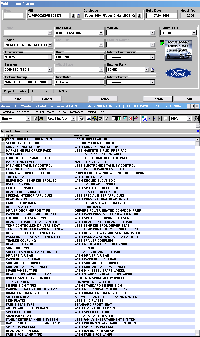 A, inca ceva: eu nu cred ca Microcat-ul are o baza de date cu toate VIN-urile produse vreodata de Ford din care il localizeaza pe cel cautat si extrage detaliile despre masina.