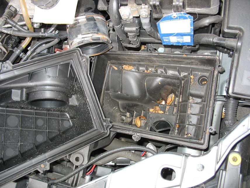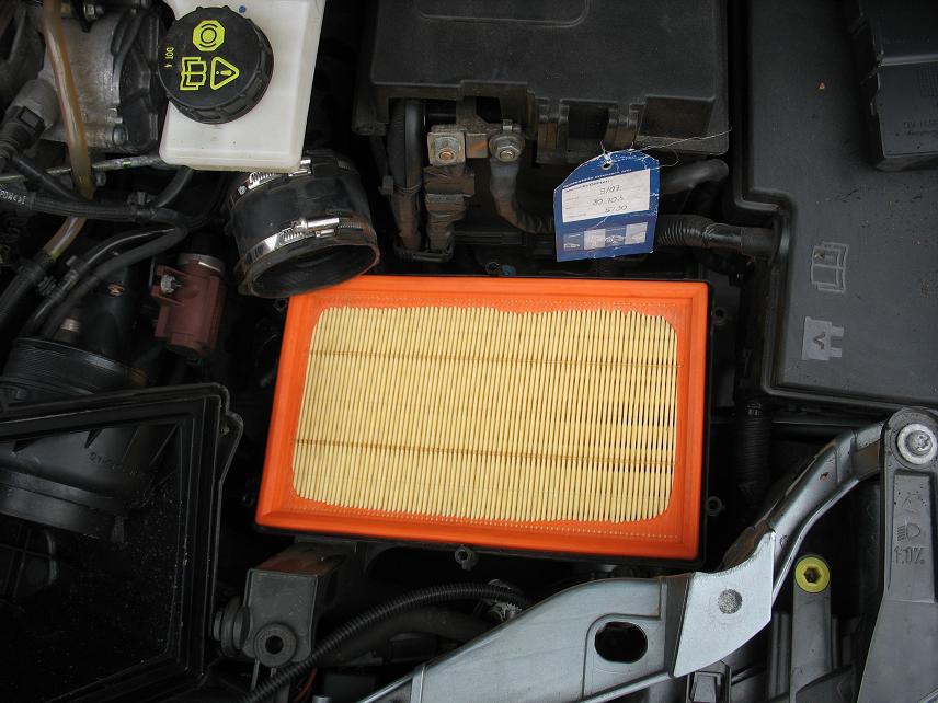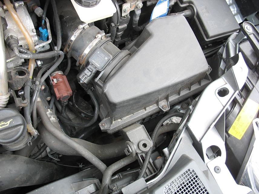 Operatiunea e simpla, e nevoie de o surubelnita lata si de un imbus mic. Cu surubelnita lata se desface colierul care prinde furtunul ce iese din carcasa filtrului de aer (colierul de jos din prima poza). Cu imbusul se desfac cele 6 suruburi care tin carcasa, apoi carcasa se ridica. Cu putina atentie, nu trebuie desfacut si senzorul MAF.