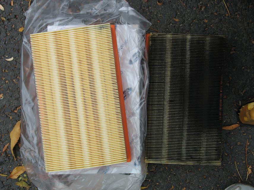 Atasez si eu poza cu filtrul de polen pe care l-am schimbat azi (in prim plan), desigur in fundal este cel nou. Urat de tot arata, gri, pe alocuri innegrit, si cu ceva frunze pe acolo. Ma bucur ca l-am schimbat.