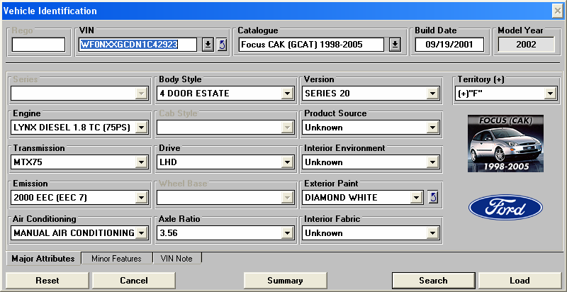 As dori si eu niste informati pentru urmatorul VIN : WF0NXXGCDNYL83372