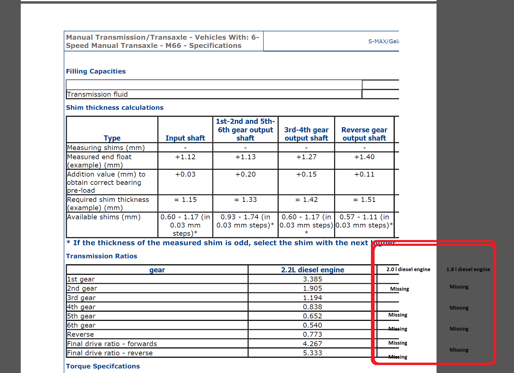 Poate imi spuna cineva daca sunt diferente intre "Transmission ratios" la cutiile de viteze cu 6+1 trepte (M66) montate pe motoare 1.8 tdci (euro 4) si 2.0 tdci (euro 4) - pentru ford mondeo mk4 (ford galaxy, ford s-max)?